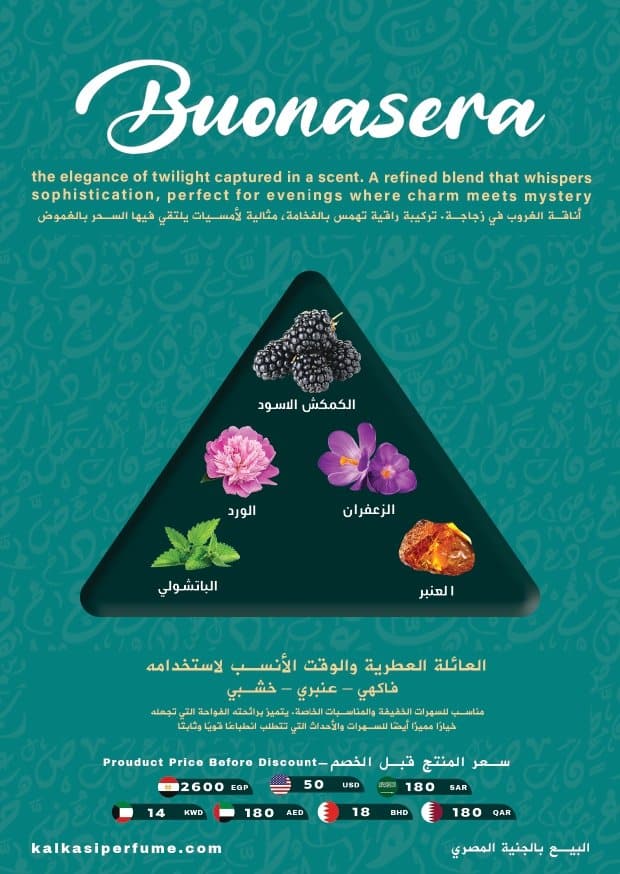 Buonasera is designed for people who prefer to express themselves without the need for words. It’s for people who have inner strength, as their attractiveness imparts a touch of charm that doesn’t need explanation. It is suitable for occasions where you seek to make a special impression that can be felt from afar. Enjoy the magic of the evening with a fragrance that reflects elegance and mystery in every note.