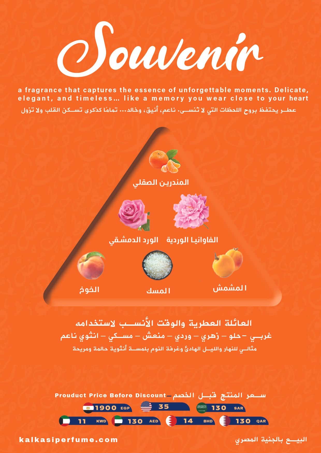 عطر Souvenir من كلاكاسي للعطور – منبع العطر الأنيق يتميز برائحته الناعمة وثباته، فهو يلمس القلب قبل أن يصل إلى الأنف، مما يجعله تجربة لا تُنسى. وإذا كنت تبحثين عن عطر يعبر عن شخصيتك بِصمت، فإن هذا العطر سيكون الخيار المثالي بالنسبة لك.