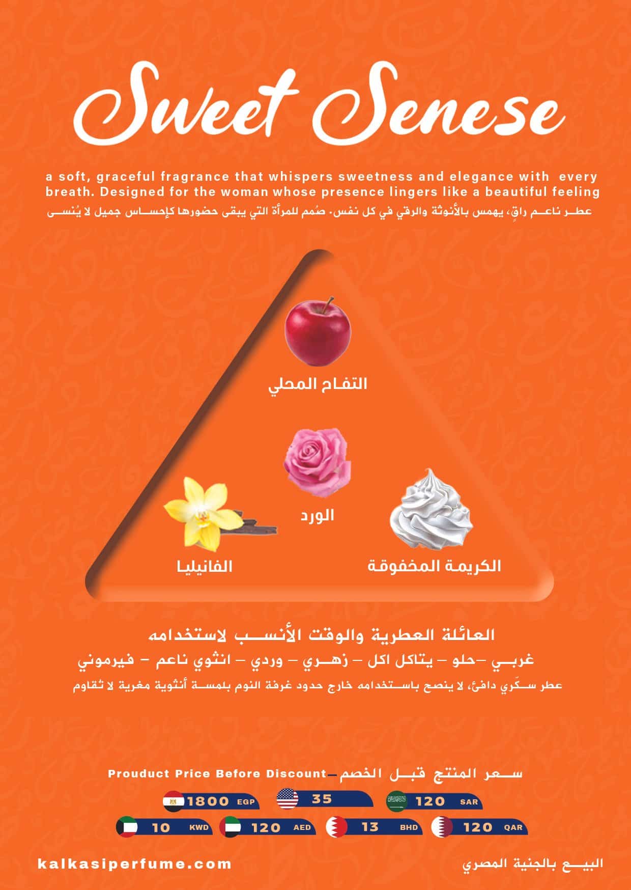 Sweet Sense من كلاكاسي للعطور – منبع العطر الأنيق. لديه رائحة تعكس أنوثة رقيقة… تأسر القلوب، تمنح الدفء، وتثير الإعجاب.